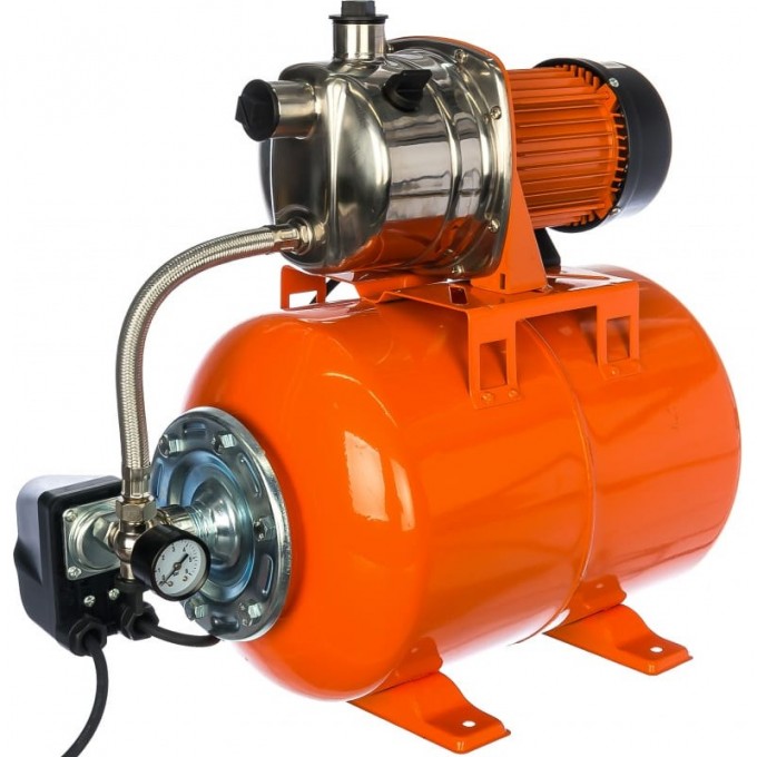 Конструкция станции состоит из асинхронного электрического двигателя, поверхностного насоса, корпуса из нержавеющей стали, гидробака. Автономная станция водоснабжения укомплектована полностью и готова к эксплуатации. Максимальный напор - 40м. Максимальная подача составляет 60 л/мин. Система работает в автоматическом режиме. Вода закачивается из источника в гидроаккумулятор емкостью 24 л и оттуда поступает в кран при включении. Как только запас воды в гидробаке подходит к концу и давление снижается до критической отметки в 1,5 атмосферы, автоматически запускается двигатель, и насос начинает закачивать воду в бак. После повышения давления до 3 атмосфер система сама отключается. Станция оснащена тепловым реле для защиты от перегрева, «сухого хода». Наличие встроенного эжектора позволяет насосной системе поднимать воду с глубины до 9 м, а также снижает требования к чистоте перекачиваемой жидкости. В ней могут содержаться твердые включения (до 150 г/м³).