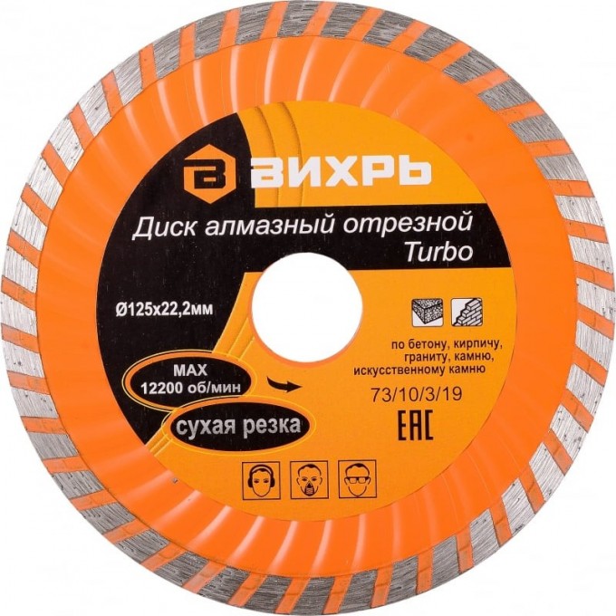 Диск алмазный ВИХРЬ ТУРБО отрезной 125х22,2 мм, сухая резка 73/10/3/19