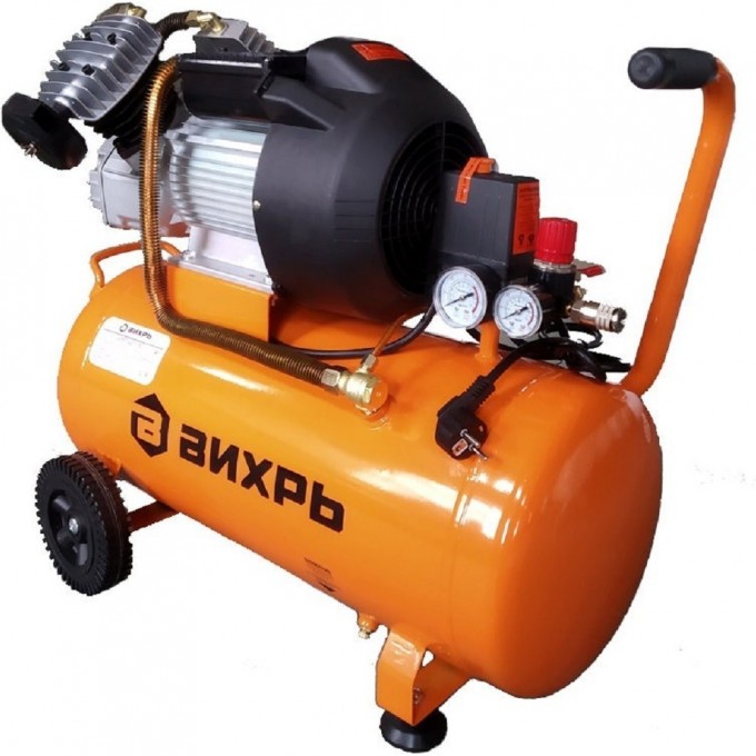 - Компрессор Вихрь КМП-400/100 74/3/9 имеет мощный двигатель 2500Вт