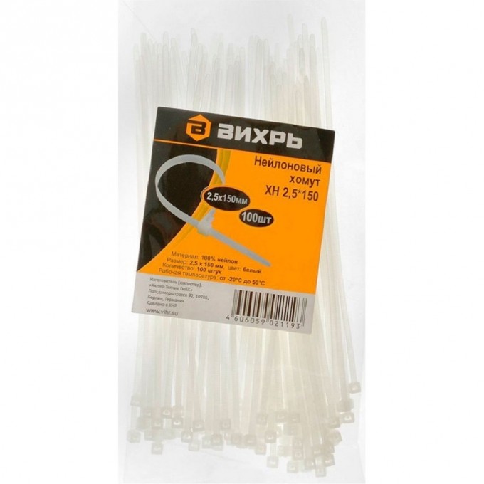 Хомут ВИХРЬ нейлоновый 2,5*150 Б (100 шт) 73/9/1/11